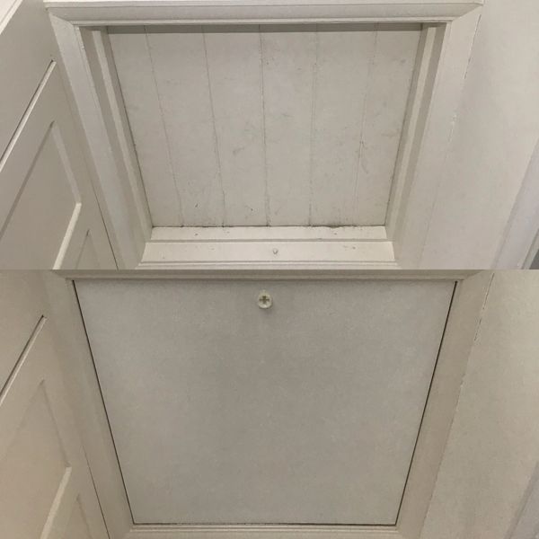 Hinged trapdoors are a piece of cake to open using your loft ladder pole.
