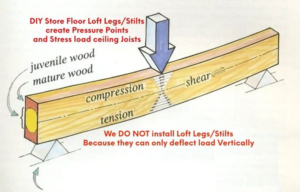 We DO NOT install DIY store floor plastic loft leg support stilt kits.